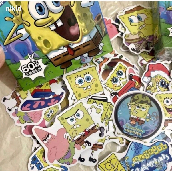 50 малки спондж боб Спонджбоб Квадратни гащи spongebob самозалепващи лепенки стикери украса декор → Обява 43887522