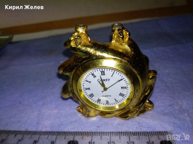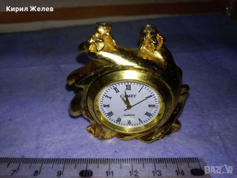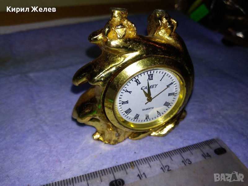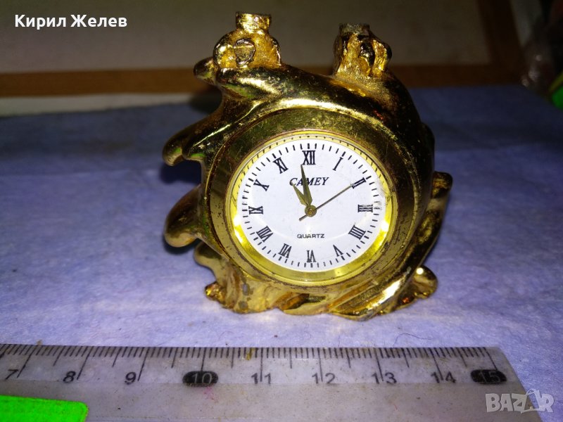 Стар ПОЗЛАТЕН МЕТАЛЕН НАСТОЛЕН КВАРЦОВ ЧАСОВНИК CAMEY 41282