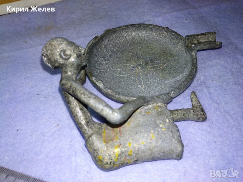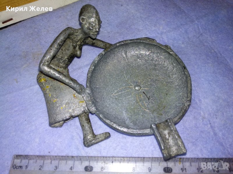 Стар АФРИКАНСКИ МЕТАЛЕН ФИГУРАЛЕН ПЕПЕЛНИК Рядка РЪЧНА ХУДОЖЕСТВЕНА ИЗРАБОТКА За КОЛЕКЦИЯ 42669