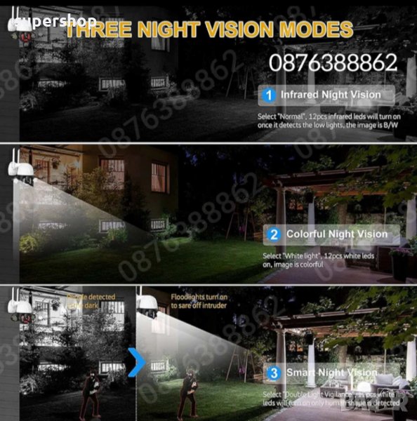 Камерата е с 12 броя бели светлини и 12 броя инфрачервени светлини, ви осигурява кристални цветни и черно-бели изображения и видеоклипове и отличен изглед през нощта.