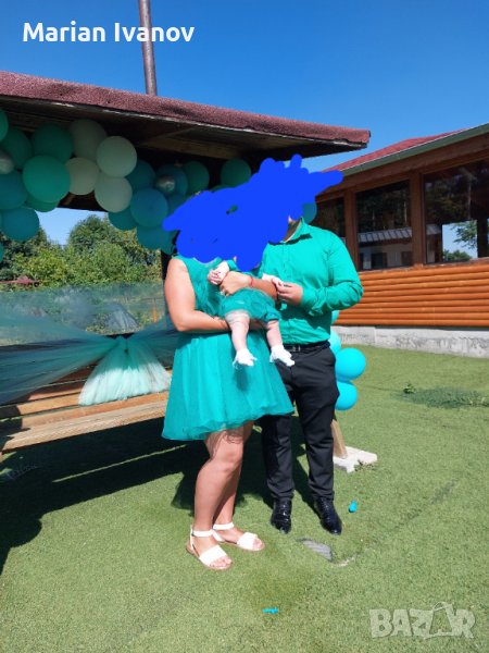 Дамска и бебешка рокля! Бебешката е за бебе 6-7м. И риза 2ХЛ за баща! Цвят Тюркоаз за повече информация. На лично!!!