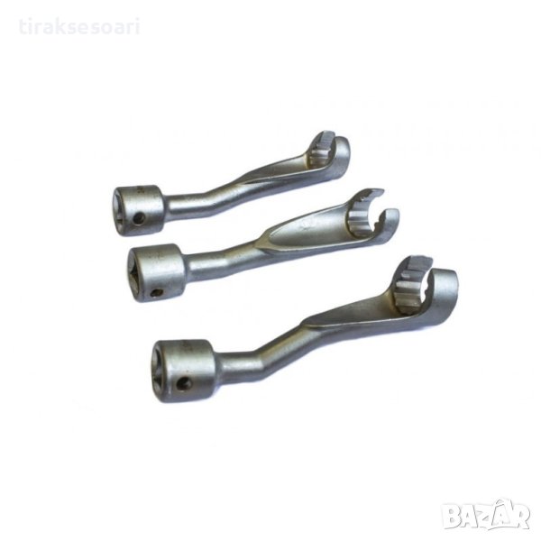 Комплект отворени дванадесетостенни ключове за отвиване и завиване на гайките на тръбичките за високо налягане към горивните дюзи или помпата.