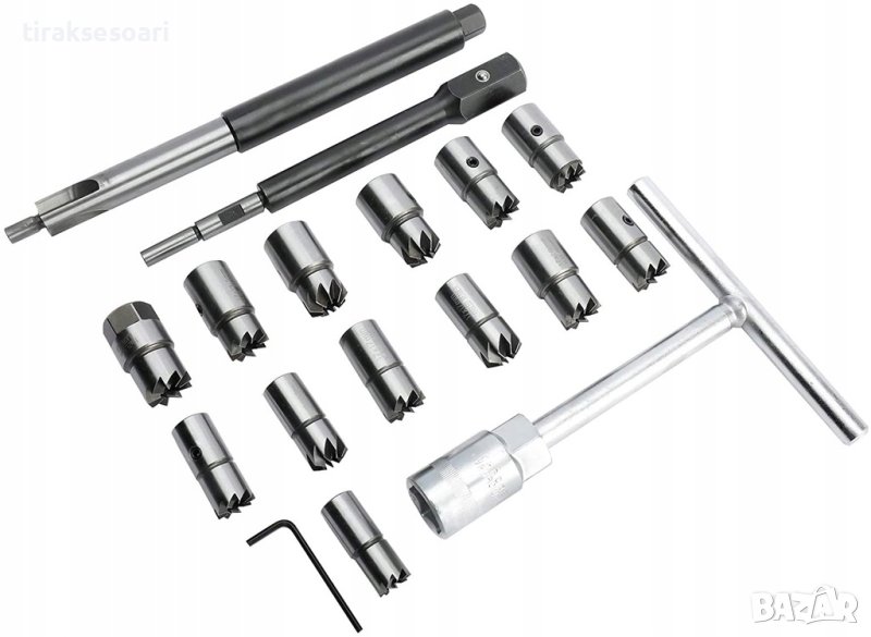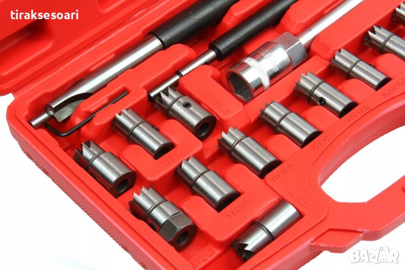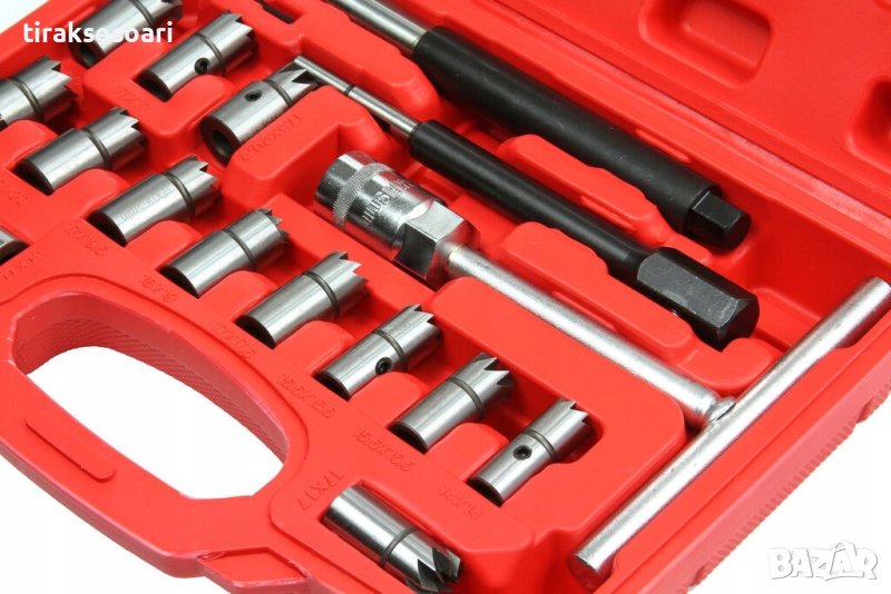 Предлага се с 13 различни фрези, които стават за повечето дизелови автомобили. T-образният ключ в комплекта е от хром ванадий.