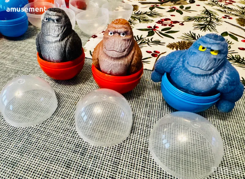 Капсули с играчки скуиши горили, пълни с хидрогел. Размер на играчката в изходно положение: 6 х 6 см, разтегната стига до 25 см. Еткетирани на български език.
