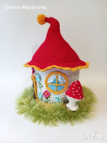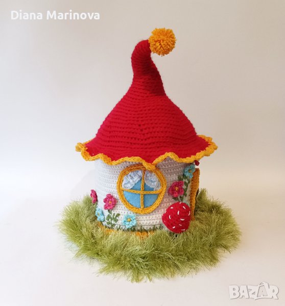 Тъзи къщичка е ръчно изплетено на една кука от висококачествена прежда. Подходящо е за подарък на деца над 7г. и за украса на интериора.