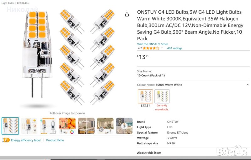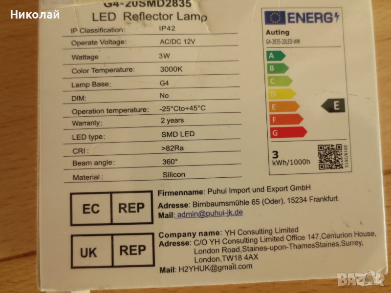 Лесен монтаж : Тази LED крушка G4 не се регулира, не