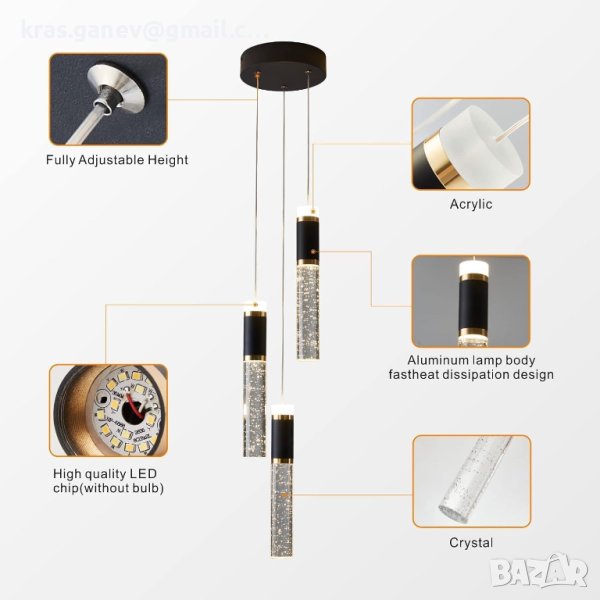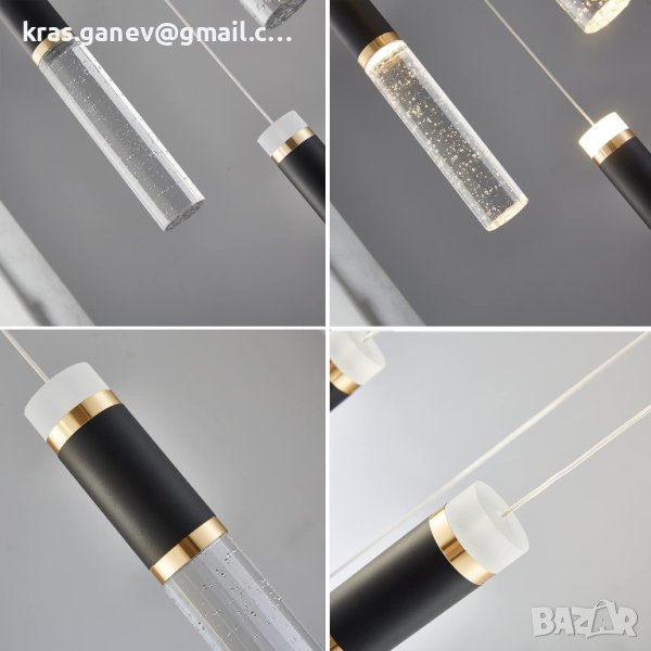 Регулируема кристална светлина. Всички кабели могат да се регулират, уникален полиран черен таван на вид, висококачествен прозрачен колон с балончета може да излъчва невероятна светлина от всички ъгли. Невероятното осветление на дъждовната капка на кристалния полилей е красива светлина на тавана.
