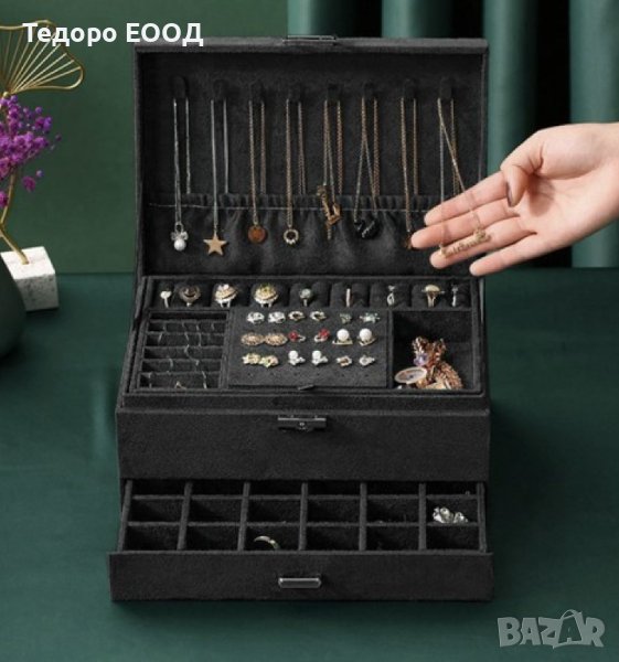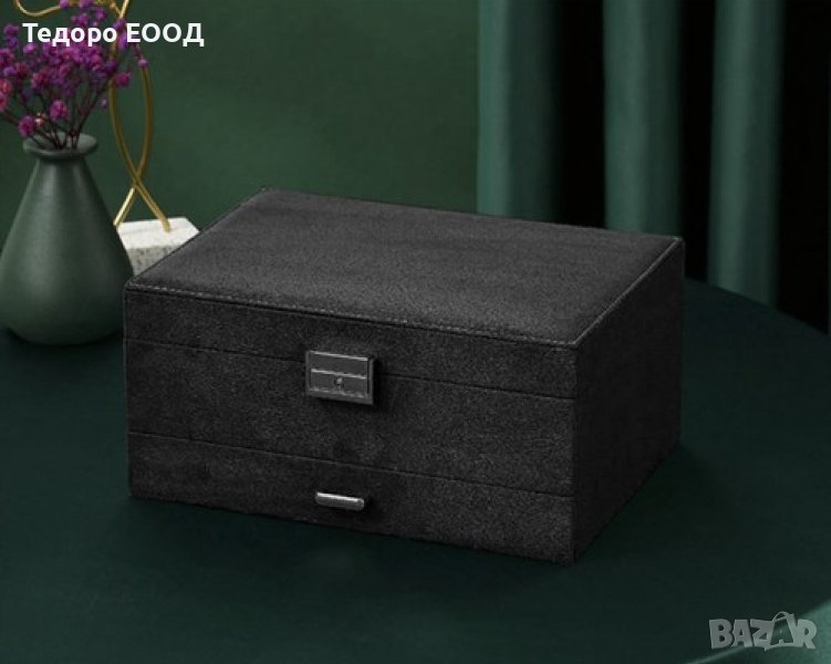Луксозна кутия за бижута с ключ за заключване и много отделения, черна → Обява 43899506