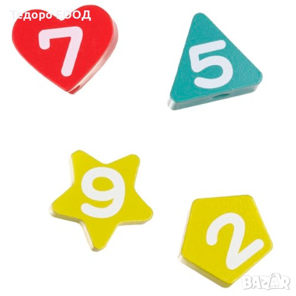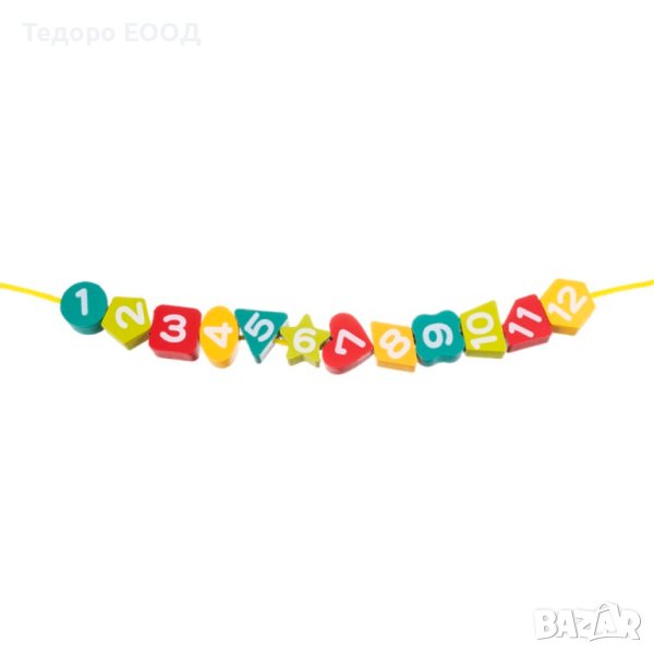 * В комплекта е включена връв с конец. Нанизвайки блокчетата, детето упражнява търпение, точност и се научава да се фокусира върху поставена задача.