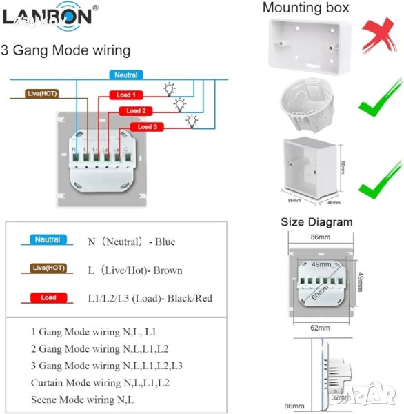 ★★★【Съвети】Нуждаете се от 2,4 GHz WiFi връзка. Нуждаете се от неутрален проводник. Използвайте приложение за интелигентен живот, не поддържа tuya smart life. Ако имате проблем с интелигентния превключвател или се нуждаете от друга поддръжка, не се колебайте да се свържете с нас чрез Amazon или да гледате гледайте във видеото „Ръководството за потребителя на LANBON Smart Switch Video“.