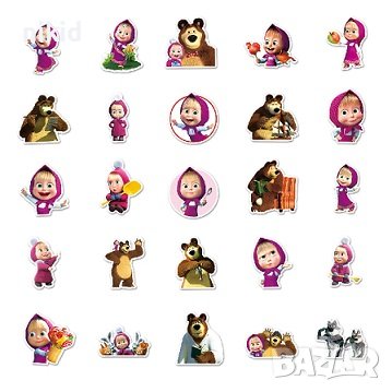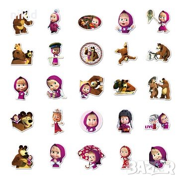 50 бр Маша и Мечока самозалепващи лепенки стикери за украса декор картонена торта и др → Обява 43901035