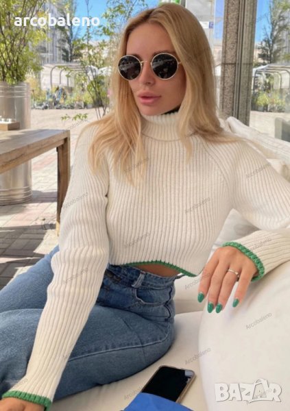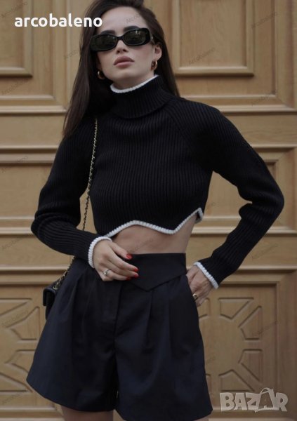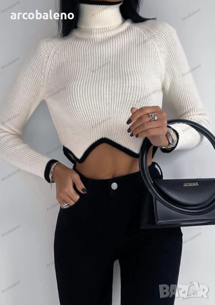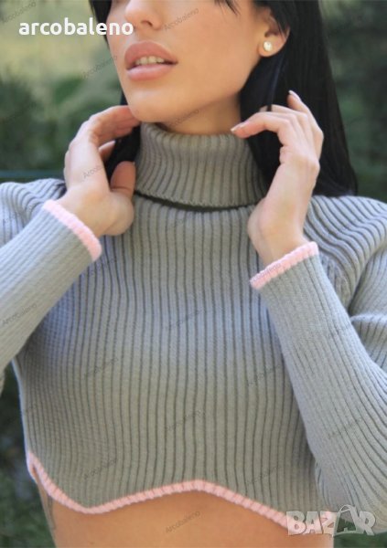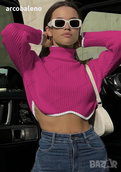 Дамски къс пуловер с яка и неравен подгъв, 9цвята