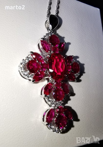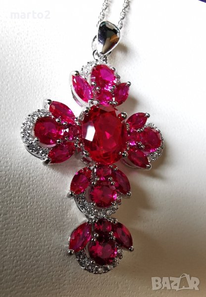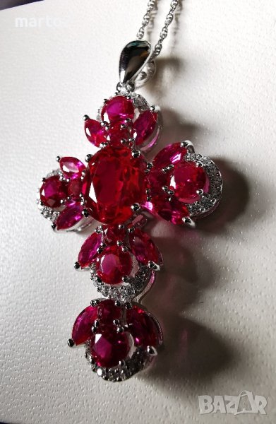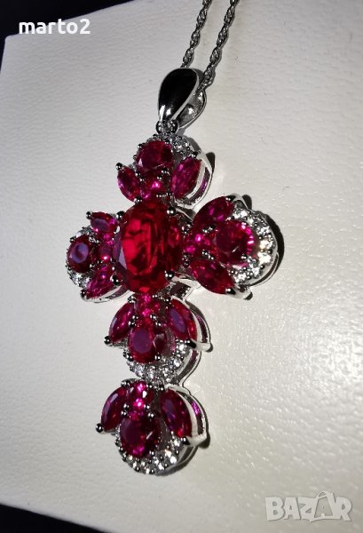 Кръста е с камъни Лабораторни Рубини и Циркони!