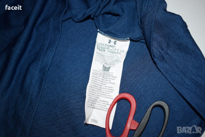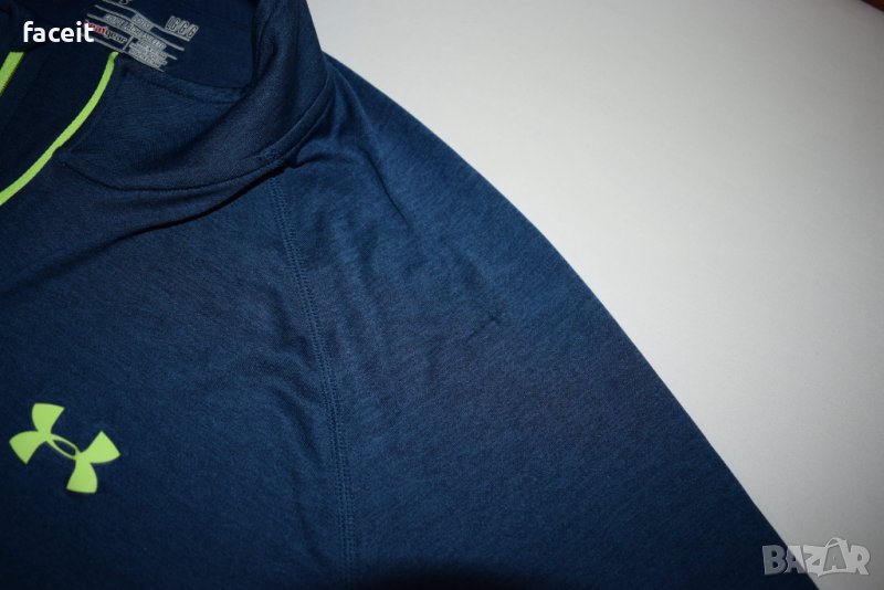 Under Armour! Горнището е страхотно, както на външен вид, така и от материала от който е изработено. Много леко, здраво, удобно и незапарващо тялото. Единствената забележка се вижда на снимка 8, има малка линия, но като цяло горницата е като нова. Горнището идва от чужбина (Норвегия). Изпращам до цялата страна по Еконт или Спиди!