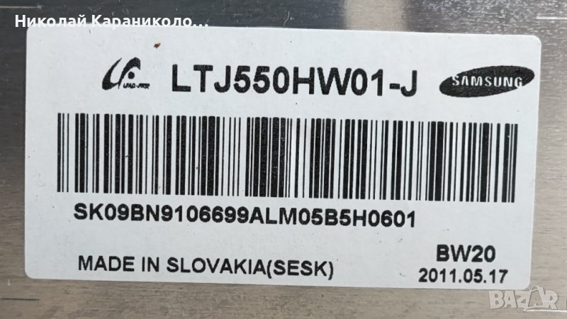 Продавам тв SAMSUNG UE55D6530 за части по причина-счупена матрица/LTJ550HW01-J/.Редовни съответно: