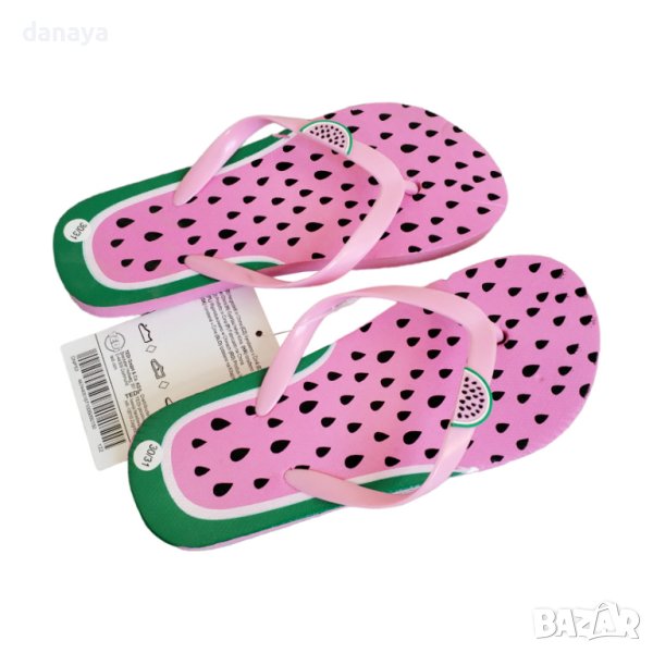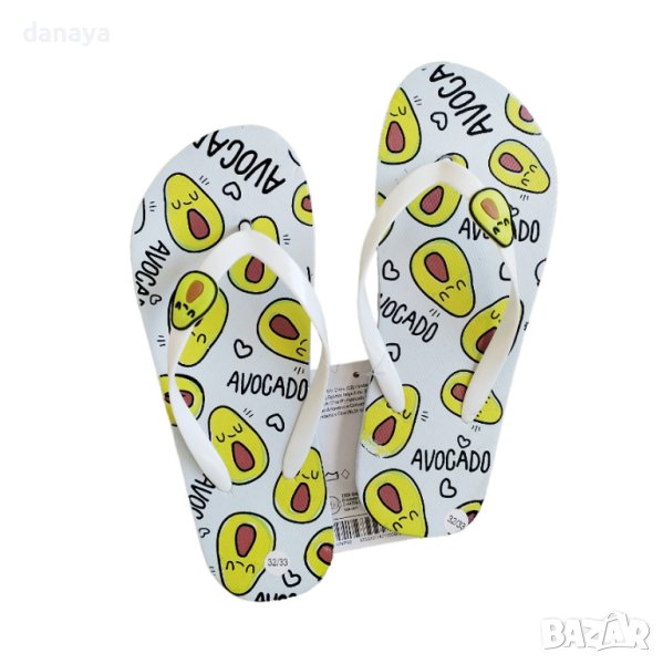Детски джапанки с принт на резен диня с множество семки или дизайн с авокадо. За момчетата има също толкова сладурски дизайни – с принт на акули или самолет. Супер свежи цветове. Джапанките са удобни, за плажа или разходки.