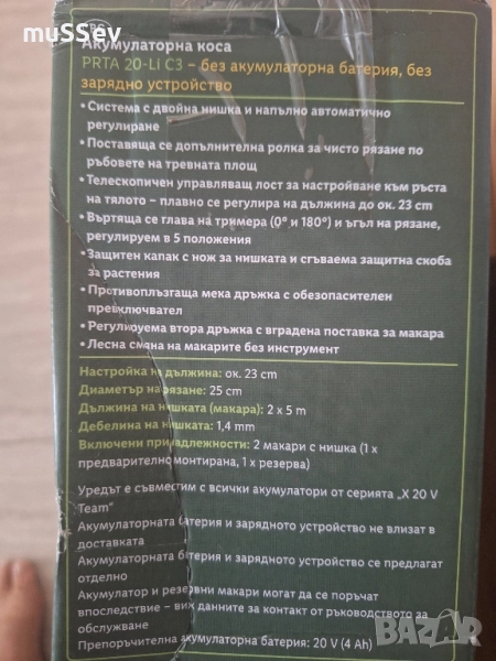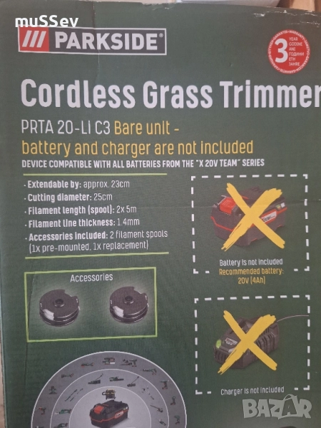 Акумулаторен тример на Парксайд 20В Parkside PRTA 20 V → Обява 43910010