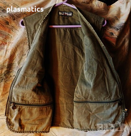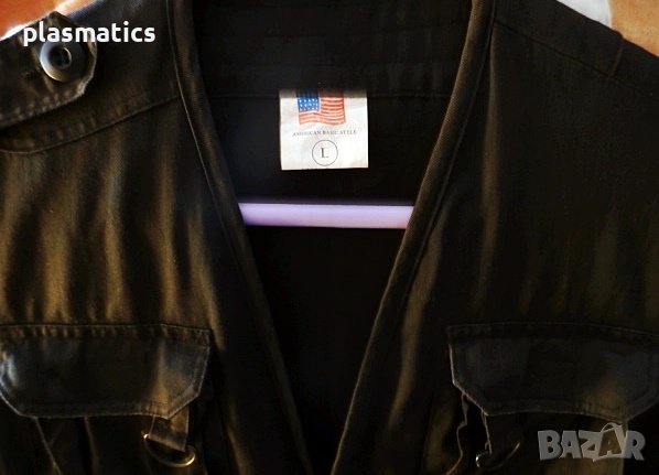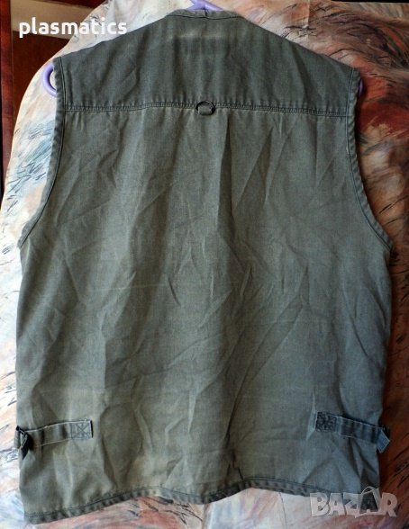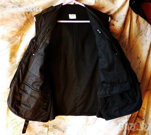 Черния елек е с 14 джоба, от които 4 вътрешни и голям джоб на гърба. Дължина 66см, ширина 58см, размер L. Цена 22лв.