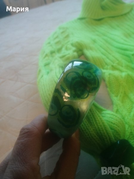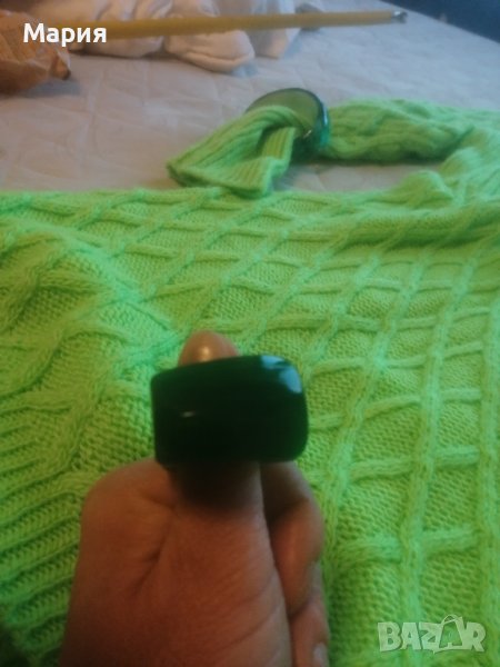 Нова Зелена рокля фино машинно плетиво +гривна и пръстен