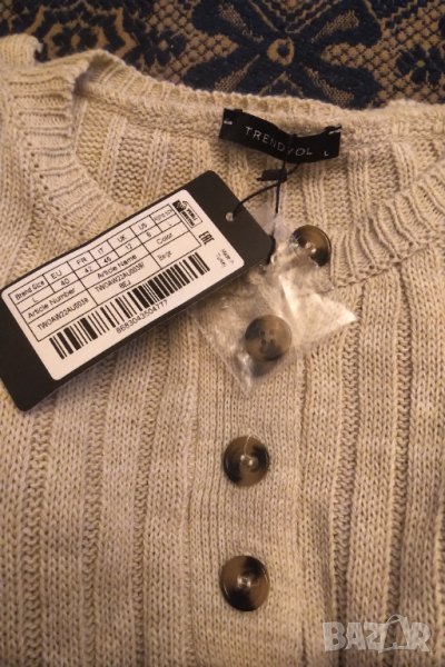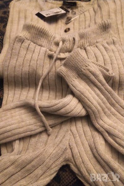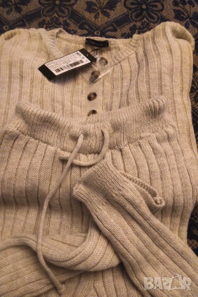 Нов с етикетTrendyol Collection нов домашен комплект от две части ,материя акрил ,цвят бежов ( на снимките изглежда сив ).Дължина на долнището 110 см талия 84 см втален клин с връв на кръстта .модел .без подплата ,мек и удобен .средно дебел .ЦЕНАТА Е КРАЙНА .НЕ СЕПРОДАВАТ ОТДЕЛНО
