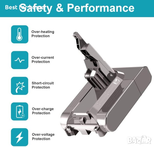 Многократно сертифициране: Защита срещу прекомерно разреждане, презареждане, свръхток, свръхнапрежение и късо съединение. Безопасна резервна батерия за домашни вакуумни инструменти.