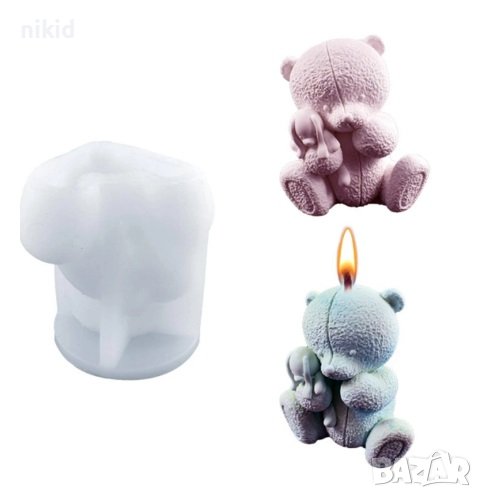 3d Мече държи зайче силиконов молд форма фондан гипс шоколад свещ декор украса → Обява 43915160