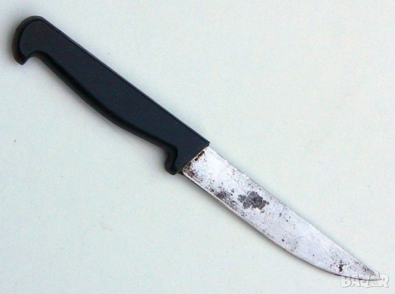 Класически кухненски нож - прибор за готвене, с острие от неръждаема стомана (неръждавейка) и дръжка ръкохватка от пластмаса. Подходящ за обща употреба в кухнята или за технически цели, както и за заведение ресторант механа кръчма изба, празненство тържество и ритуали (сватба, курбан, Зарезан и др.), декор филм продукция, театър постановка спектакъл, предмет на художествено и дизайнерско творчество, колекция, колекционерство, колекциониране и др.