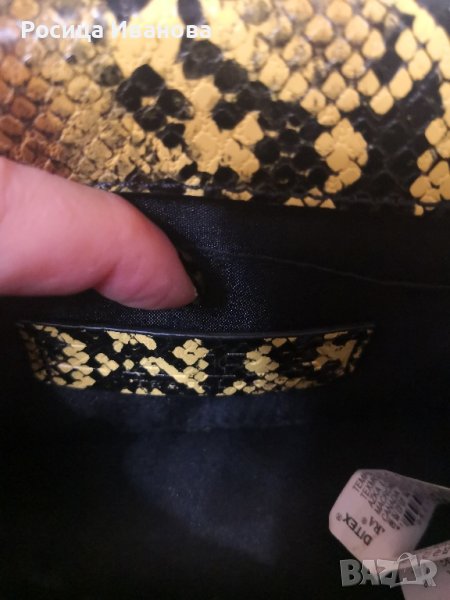 Zara, нова кокетна чанта със змийски принт от еко кожа. Дръжката е комбинация от кожа и синждир. Размер - ширина 29 см , височина 13 см., ширина на дъното 9 см. , дължина на дръжката 110 см.20 лв.