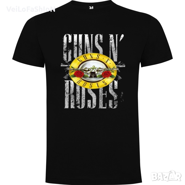 Новa мъжкa тениска в черен или сив цвят на музикалната група GUNS N' ROSES. Произведена от 100% памук с плътност на тениската 165гр./м². Тениската е странични шевове, четири слойно кръгло деколте и подсилени двойни шевове на деколтето и раменете. Подходяща както за ежедневна употреба, така и за спорт или тренировка в свободното време.