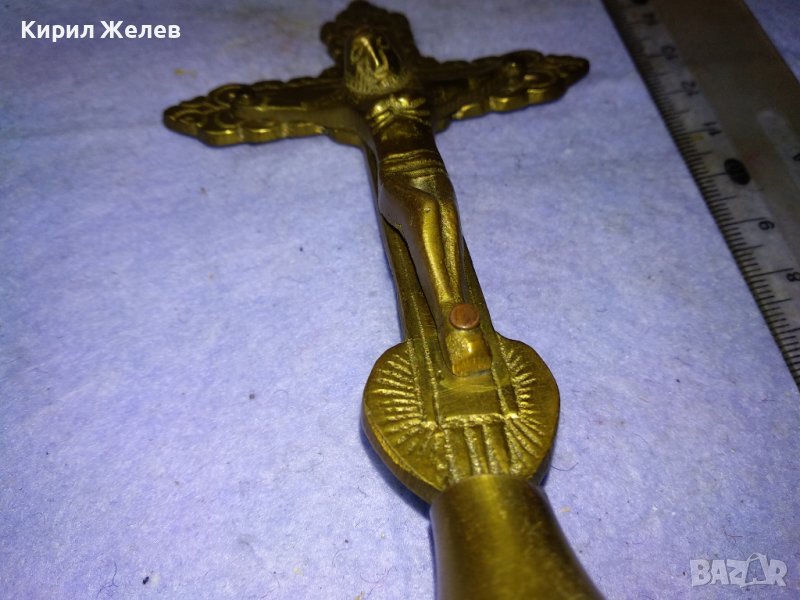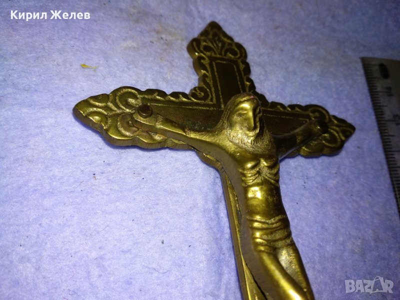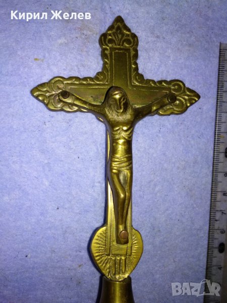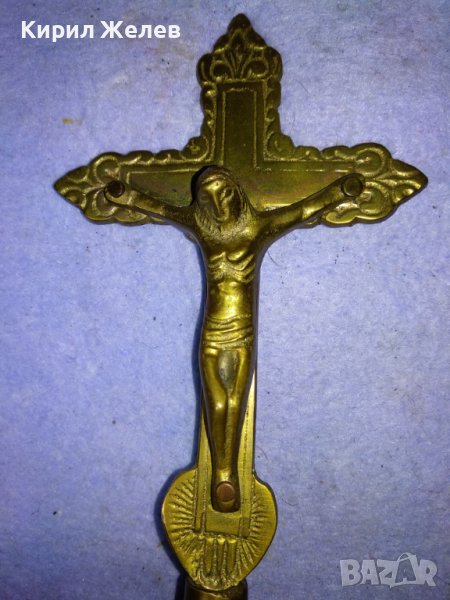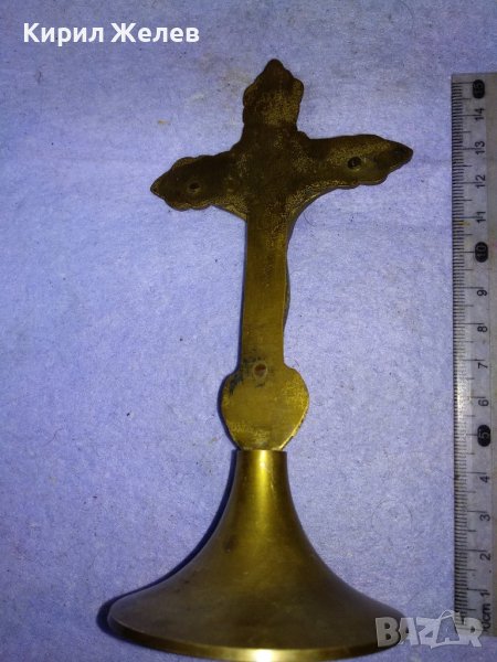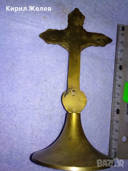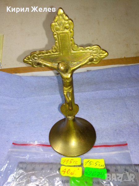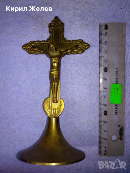 Старо КРАСИВО ОРНАМЕНТИРАНО ГОЛЯМО НАСТОЛНО МЕСИНГОВО РАЗПЯТИЕ КРЪСТ 42679