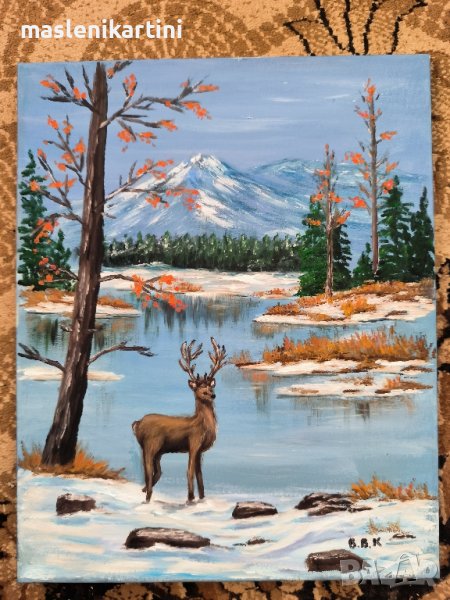 зимен пейзаж с елен маслена картина , снимка 1 - Картини - 43920170 зимен пейзаж с елен маслена картина , снимка 2 - Картини - 43920170 1/2