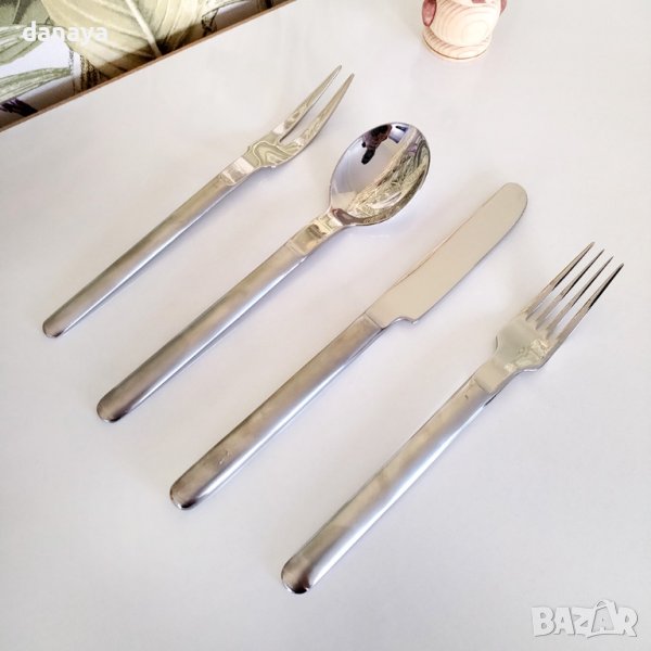 прибори за хранене, който се състои от вилици за основно ястие, лъжици за основно ястие, ножчета и вилица за месо. Изработени от качествена неръждаема стомана, стилен дизайн.