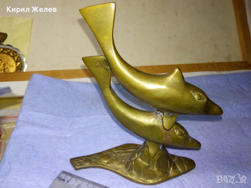 КРАСИВИ ДЕЛФИНЧЕТА Декоративна ФИГУРАЛНА НАСТОЛНА МЕСИНГОВА СТАТУЕТКА - За ТЕМА ФАУНА ИНТЕРИОР 42674