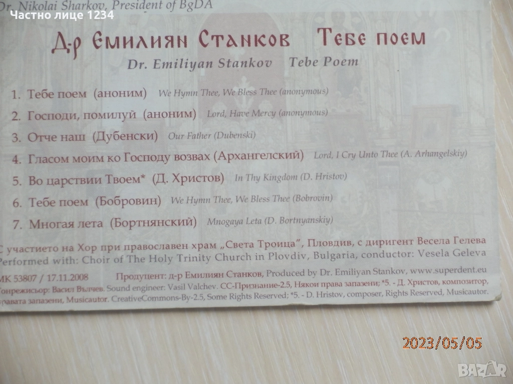 Д-р Емилиян Станков - Тебе поем - 2008, с хора към храм "Света Троица" Пловдив, 3 лв.