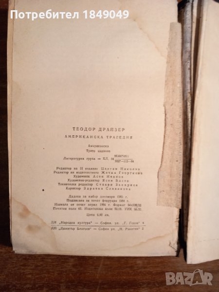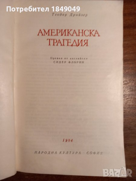 Теодор Драйзер "Американска трагедия" - 0.50 лв/1984г.,твърди корици,следи от влага,става за четене/.