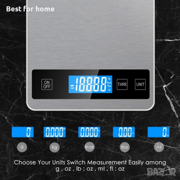 Ефективно измервайте в грамове, унции, паундове, килограми и милилитри.
