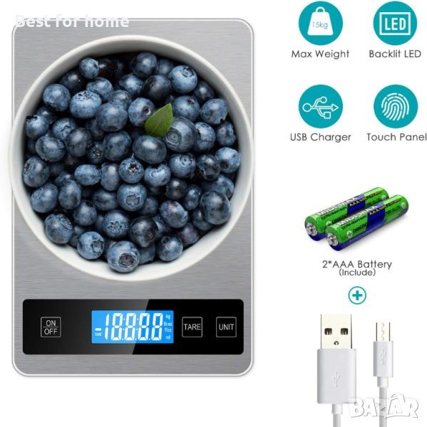 Акумулаторна кухненска везна 15 кг Лед с иноксово покритие