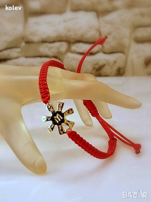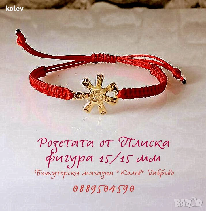 Златна фигура РОЗЕТАТА ОТ ПЛИСКА в гривна червен конец