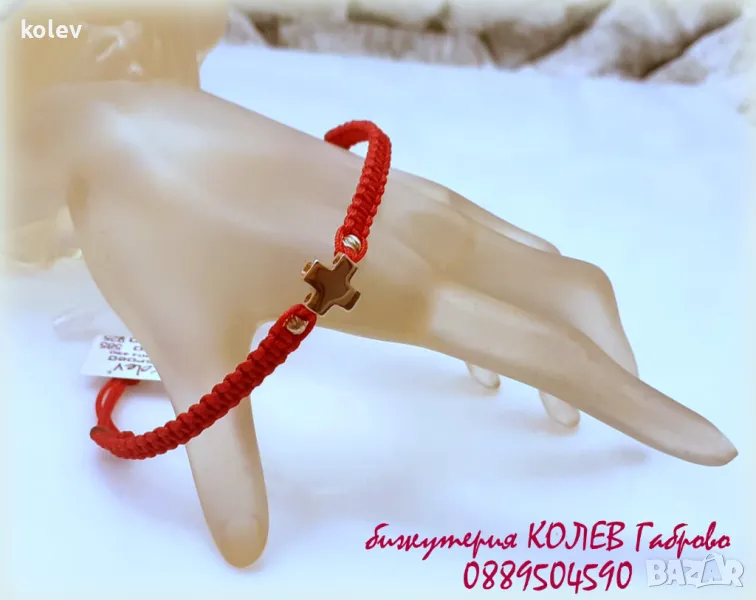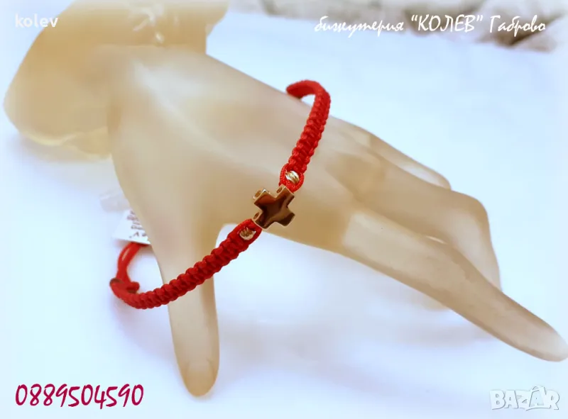продадена!Златен кръст с топчета в гривна червен конец за защита и положителна енергия