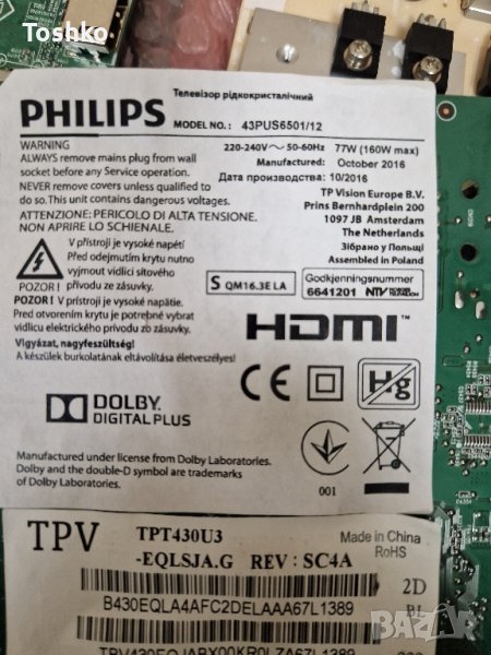 Power board 715G7857-P01-000-002S TV PHILIPS 43PUS6501/12 → Обява 43927889