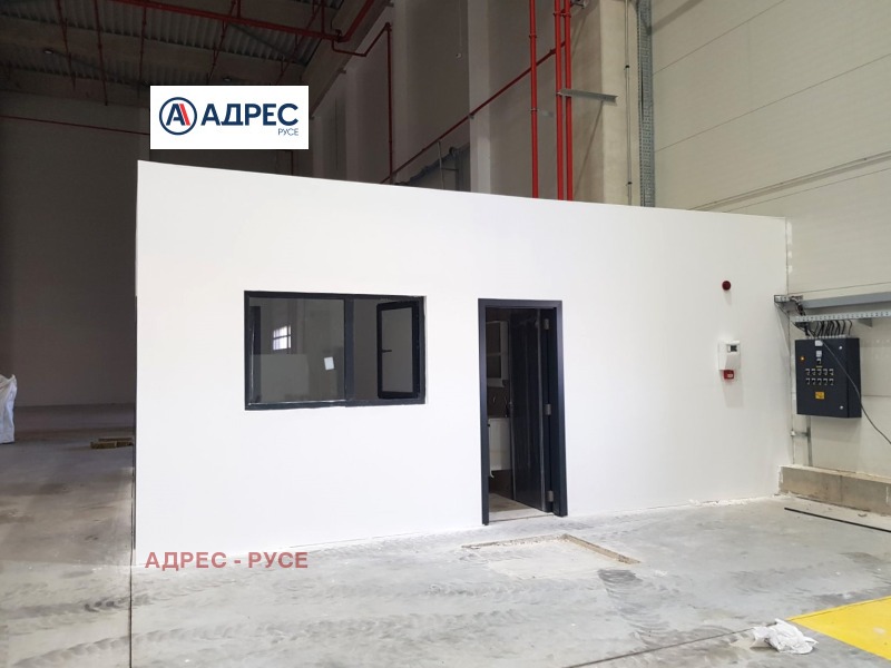 Предлагаме Ви под наем логистичен склад, в района на Индустриален парк Русе. Сградата е построена през 2020-2021 г. Категория клас А, с пожароизвестяване и пожарогасене - спринклер система както и димни люкове. Складът е изграден от термопанели с каменна вата, покривът е покрит хидроизолация PVC мембрана. Подът на склада е шлайфан бетон, с издръжливост товар 5 тона на кв.м. Височина на сградата - 13,5 м. На кота нула, площта е 1 000 кв. м, като достъпа е през врата с размери 5,00/ 4,50 м. Сградата разполага с 4 товарни рампи с автоматично нивелиране за камиони и рампа за подход на мотокари. Вътре в склада има обособени 3 офиса, всеки със санитарен възел. Прилежаща площадка пред склада около 1 500 кв. м, с обособен паркинг за автомобили. За повече информация и осъществяване на огледи: 0890567890 Офис Адрес Русе.