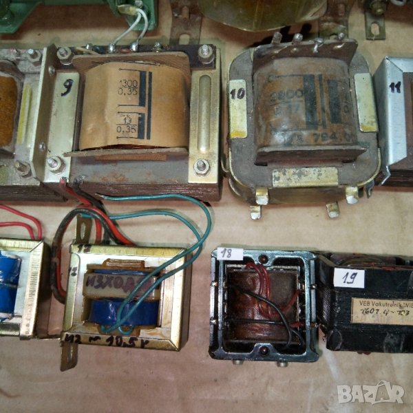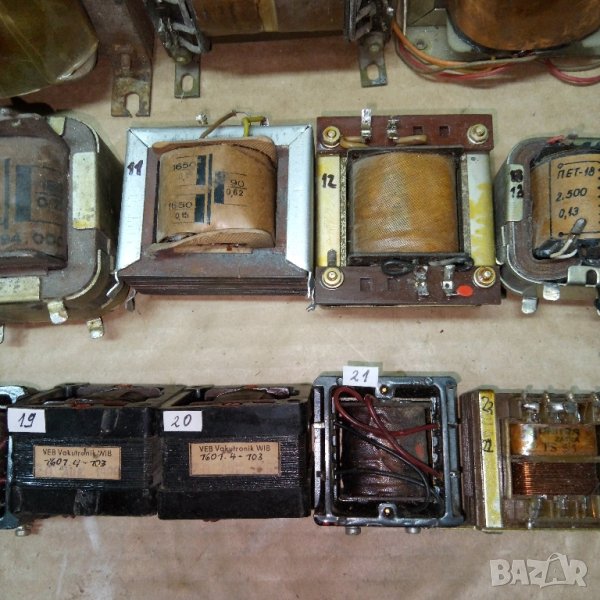 18/, 19/ , 20/ и 21/ номер са едентични немски трансформатори от 1968г.Вход 220V изход 19V.