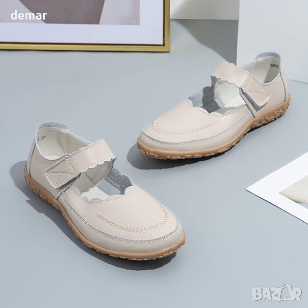Изработени от естествена гъвкава кожа, тези Mary Janes могат да се похвалят с щадяща кожата подплата и неплъзгаща се, устойчива на износване TPR подметка. Дизайнът се отличава с кръгла глава, лесно закопчаване с кука и примка и дишаща кожена горна част. Стелката от свинска кожа абсорбира потта, като гарантира, че краката ви остават сухи и без миризма, идеално за тези, които предпочитат да не носят чорапи. Неплъзгащата се текстурирана подметка намалява вибрациите при ходене, предлагайки комфорт през целия ден. Тези стилни мокасини се съчетават добре с тениски, дънки или ежедневни рокли за различни поводи. Перфектен за ежедневна разходка, случайни излети, шофиране, офис работа, пазаруване, пътуване и дългогодишна работа. Леки, гъвкави и удобни като маратонки, те са подходящи за всяка обстановка. Забележка: За по-широки или по-големи крака изберете един размер по-голям от обикновено.