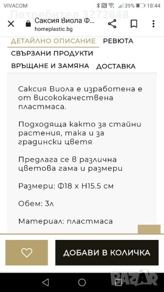 Саксия с дренаж,, Drina" -Viola/3L;18см.диаметър → Обява 43930120