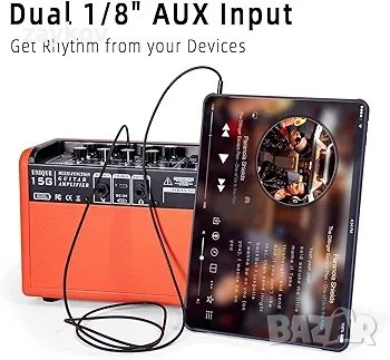 Усилвател за китара Coolmusic 15G, преносим усилвател за китара с bluetooth