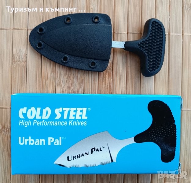 Миниатюрен нож за самозащита от Cold Steel. Urban Pal е оборудван с малко острие със сереторно заточване и къса дръжка с гумирано покритие, пригодена за стабилно задържане в дланта. Ножчето може да се носи на врата.
