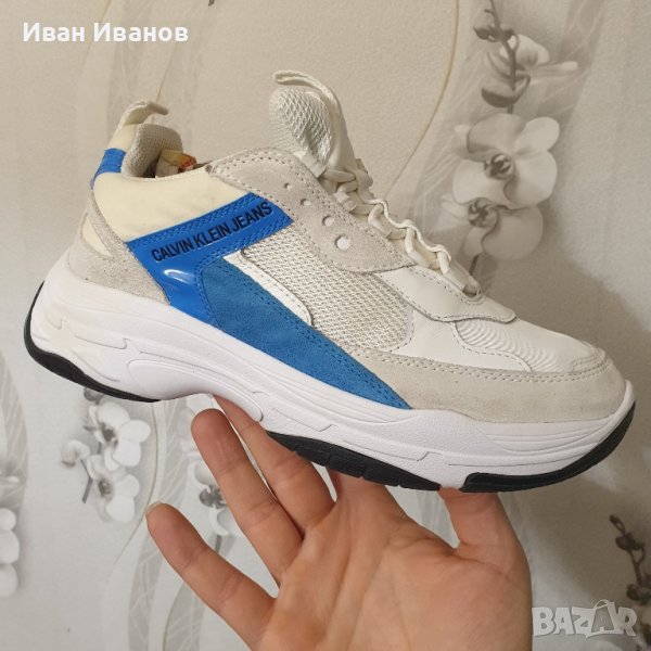 Calvin Klein Jeans R0449 Бели маратонки Maya Calvin Klein Jeans Дамски маратонки.Горна част от кожа и имитация на кожа.Подплата от мрежест плат. Цвят: бял/син.