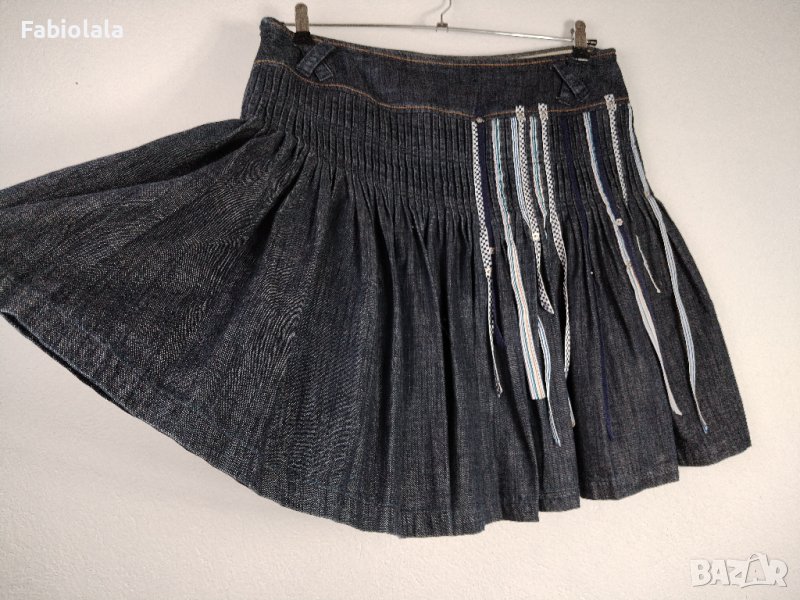 Дънкова пола с весели панделки и подплата.