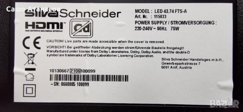 silvaSchneider LED 43.74 FTS-A с дефектна матрица ,17MB181TC ,VES430UNDP-N1-N46 ,N2TP430FHDLV2D-F_F6