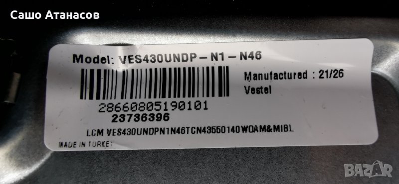 Модули от телевизор silvaSchneider LED 43.74 FTS-A с дефектна матрица (панел VES430UNDP-N1-N46 )
